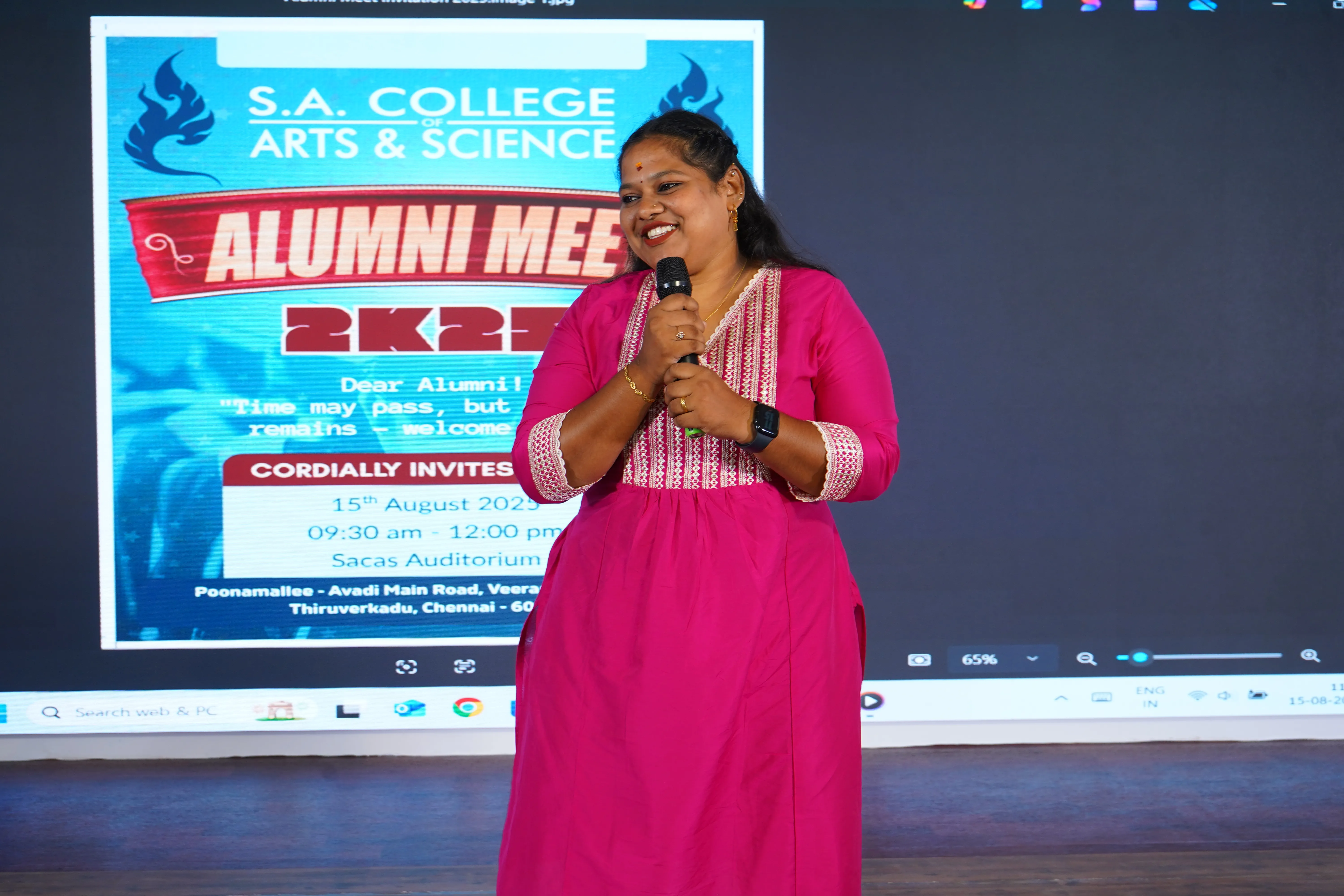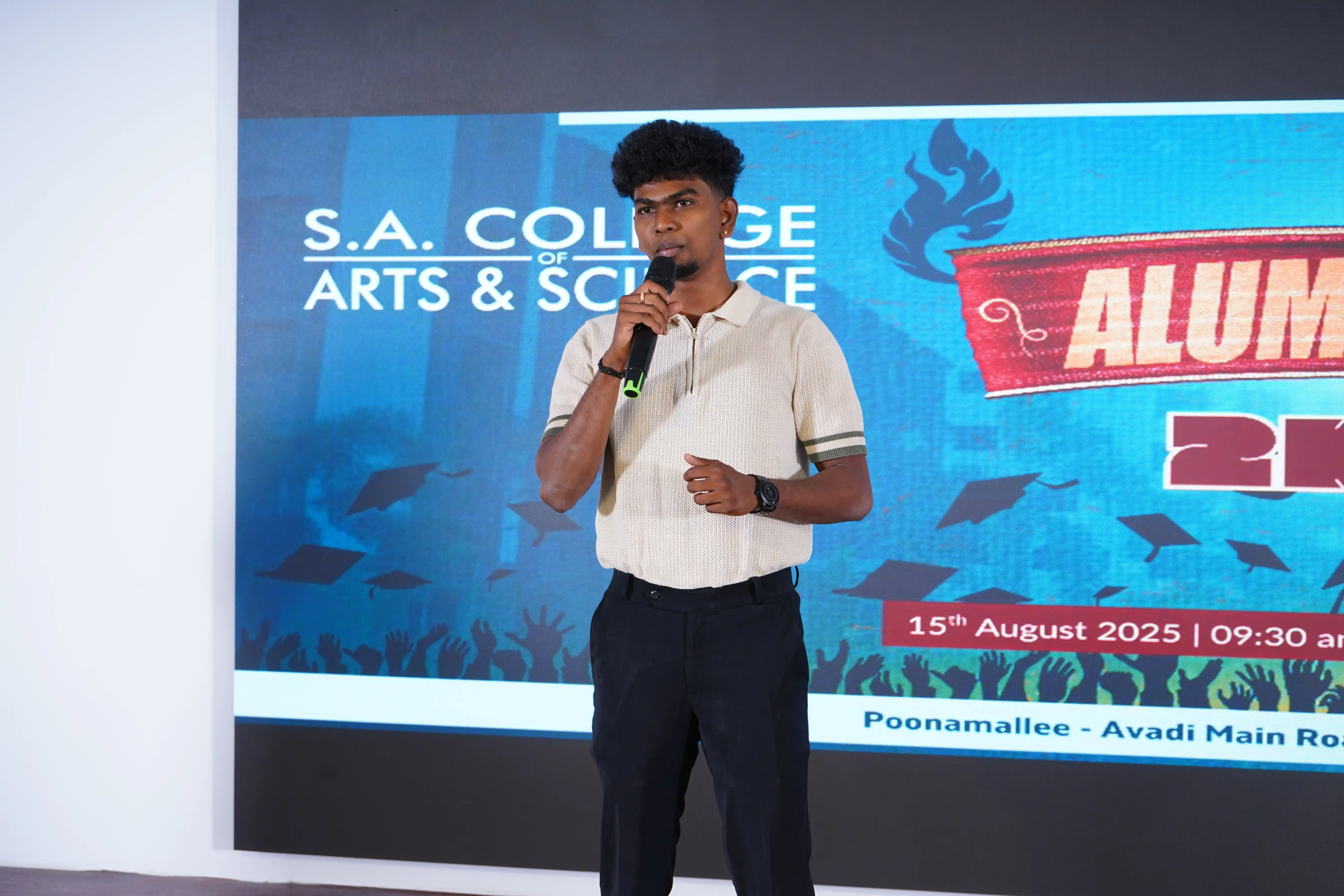 The first Alumni Meet of S.A. College of Arts & Science was held on 15th August 2025 at the SACAS Auditorium. The event was a heartwarming gathering filled with memories and celebration. It was organized by the Department of Tamil and attended by Principal Dr. Malathi Selvakkumar, Correspondent Mr.P. Venkatesh Raja, and the College Secretary Mr.P. Dhasarathan.